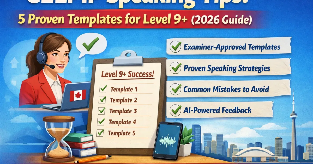 This guide reveals five examiner-approved templates that helped hundreds of test-takers jump from Level 6-7 to Level 9+ in their CELPIP speaking practice. You’ll learn exactly what to say, when to say it, and how to personalize each template so you never sound scripted. More importantly, you’ll discover why practicing without expert feedback is the #1 reason candidates keep failing-and how AI-powered speaking simulators solve this problem instantly.